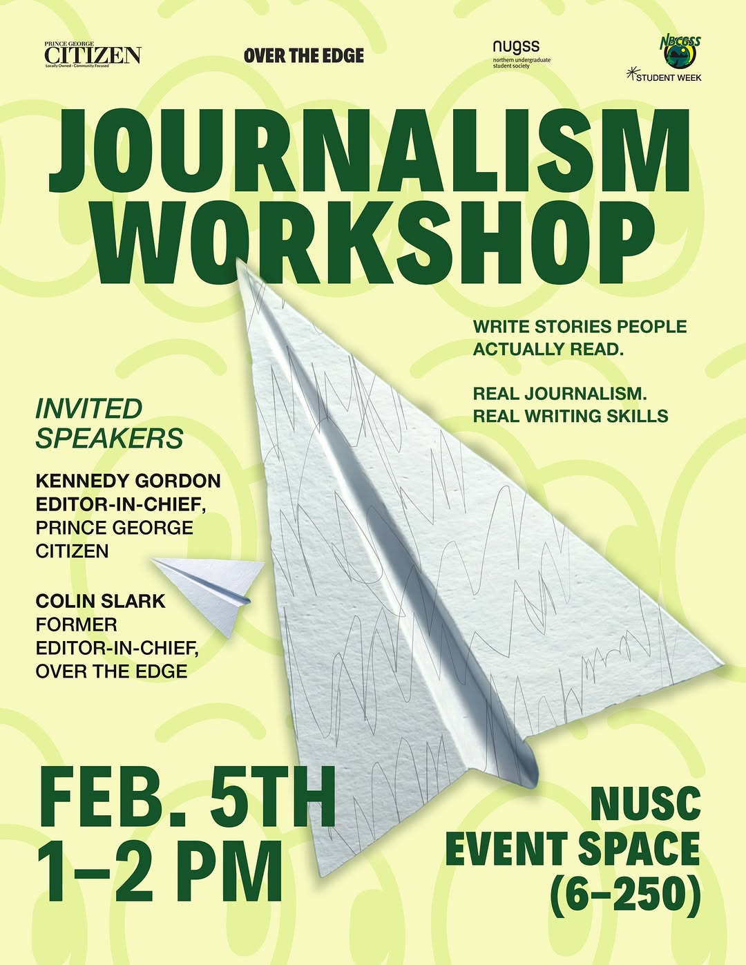 Learn from the pros: Kennedy Gordon (Managing Editor, Prince George Citizen) and Colin Slark (Journalist, Prince George Citizen & UNBC alum) will share their expertise!