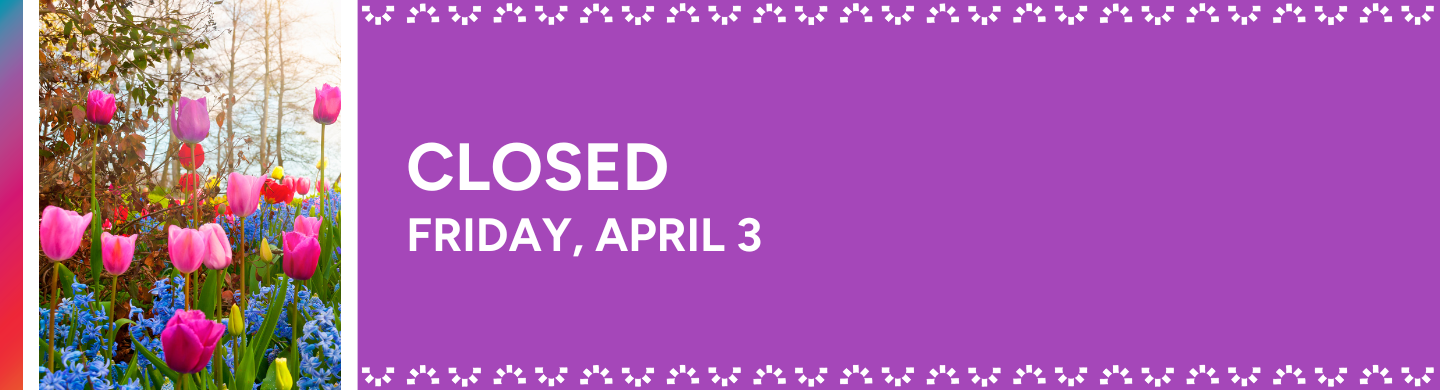 Both branches of PGPL will be CLOSED Friday, April 3rd for Good Friday, Sunday April 5th and Monday April 6th for Easter. We will be open with regular hours (10am – 5pm) on Saturday, April 4th.