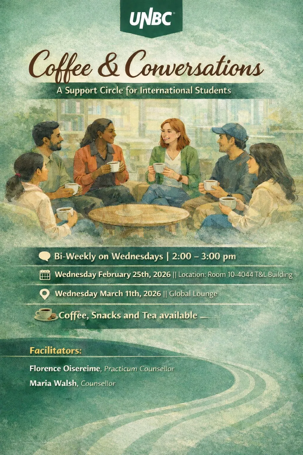 Attention all international students! Come join us at room 10-4044 in the T&L Building and the Global Lounge to have some coffee and snacks and connect with each other. We know it is very busy at this time of year, so take a well-deserved break and to join us on February 25th (10-4044) and March 11th (Global Lounge) from 2:00pm to 3:00pm to mingle with other students. This event is completely free!