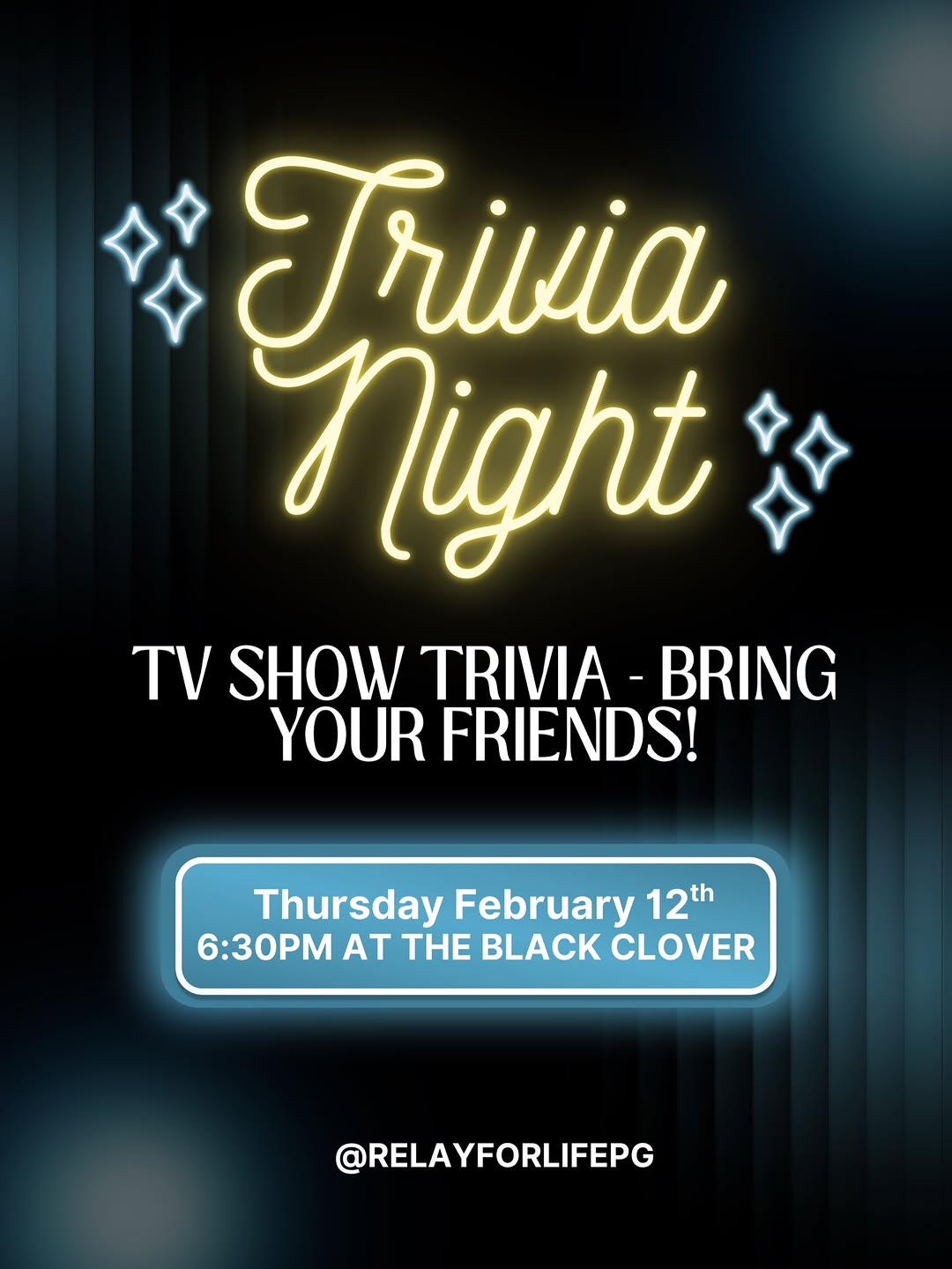 TV SHOW TRIVIA – BRING YOUR FRIENDS! Calling all TV show superfans. Grab your friends, form a team, and see who really knows their shows—from classics to current favorites! Come out for a fun night, great company, and an even better cause.