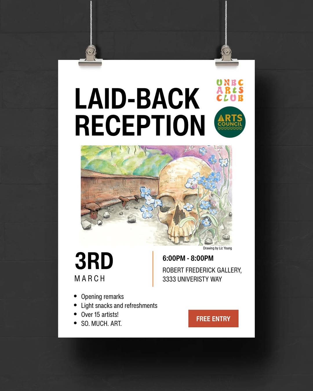 Please join us for the opening reception on Tuesday March 3rd from 6pm-8pm. Light snacks and refreshments served. Bring your friends and fam to this creative wonderland!
