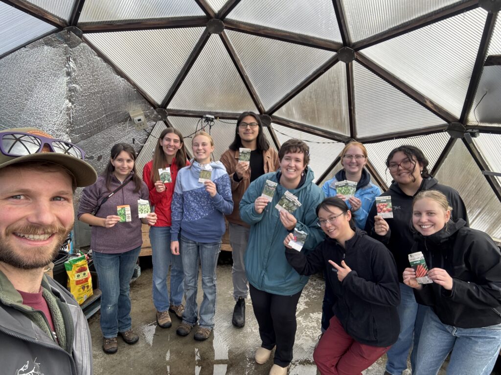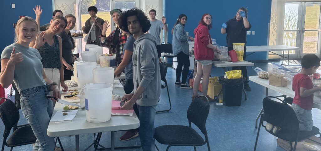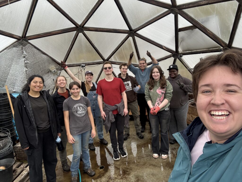 We ended the first month of school by cleaning up our Dome Greenhouse, which is located at the northern end of campus, past the parking lot at the end of building 10. Volunteers helped revitalize the greenhouse by cleaning the floor, organizing pots, topping the beds with soil, and prepping the outdoor beds on the last Saturday of September. We also spent October 1st cleaning the hydroponics in the Thirsty Moose. On the first Friday of October, we hosted a Planting Bee, where students came together to plant cold-hardy crops in the greenhouse, garlic in the outdoor beds, and a take-home plant box. Keep an eye on the hydroponics at the pub to watch our seeds germinate there too.