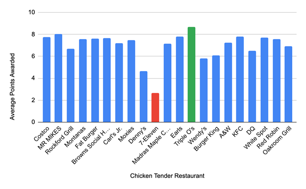 It’s worth noting that our study focused exclusively on chicken tenders, meaning chicken nuggets were not included in our assessment. While both are popular chicken-based snacks, our participants firmly believed that nuggets and tenders are distinct entities that warrant separate consideration.
