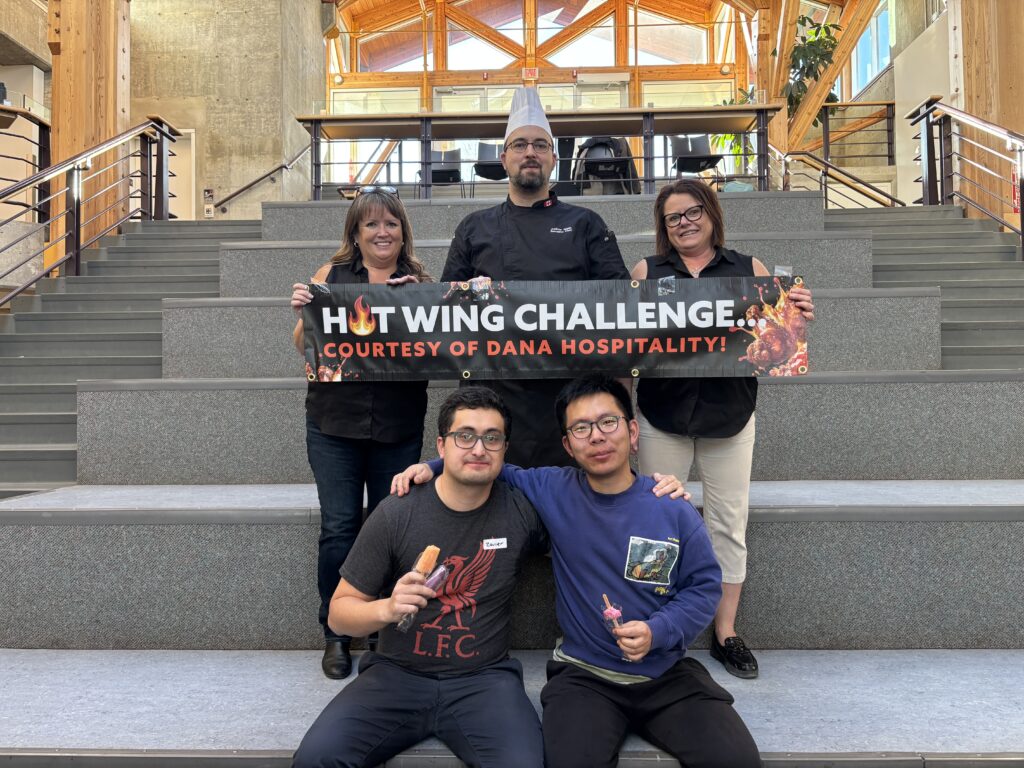 Hosted by UNBC Food Services and sponsored by Dana Hospitality, the event had twelve UNBC students sign up to torture themselves with six rounds of progressively hotter wings. What was supposed to be a quick competition turned into a 90-minute endurance test that had people literally shaking and a large crowd was witnessing the contest.
