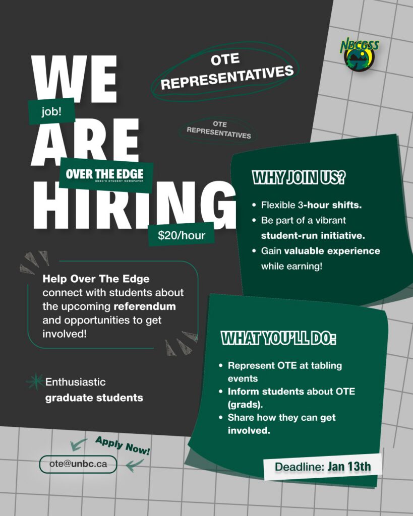 Ready to take the leap into student journalism? Email ote@unbc.ca to learn more about becoming part of the Over the Edge family.