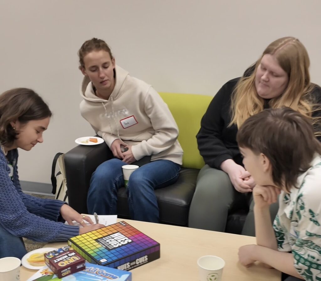 Once the tours wrapped up, everyone headed to the Global Lounge for snacks and refreshments. Board games were set out, giving students a chance to relax, hang out, and keep getting to know each other.